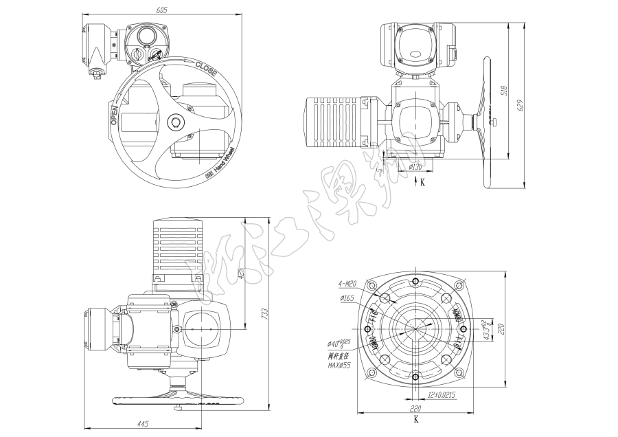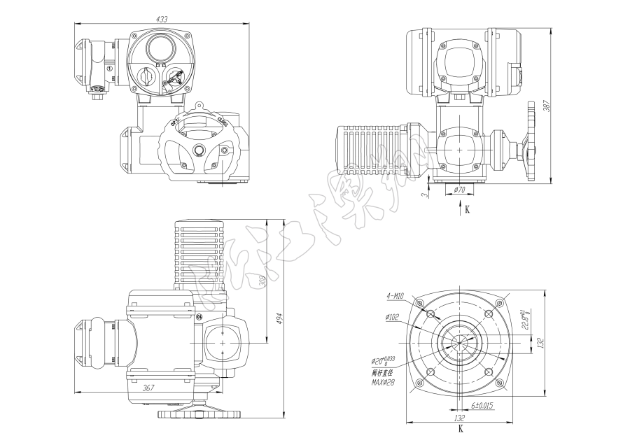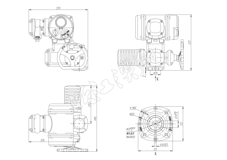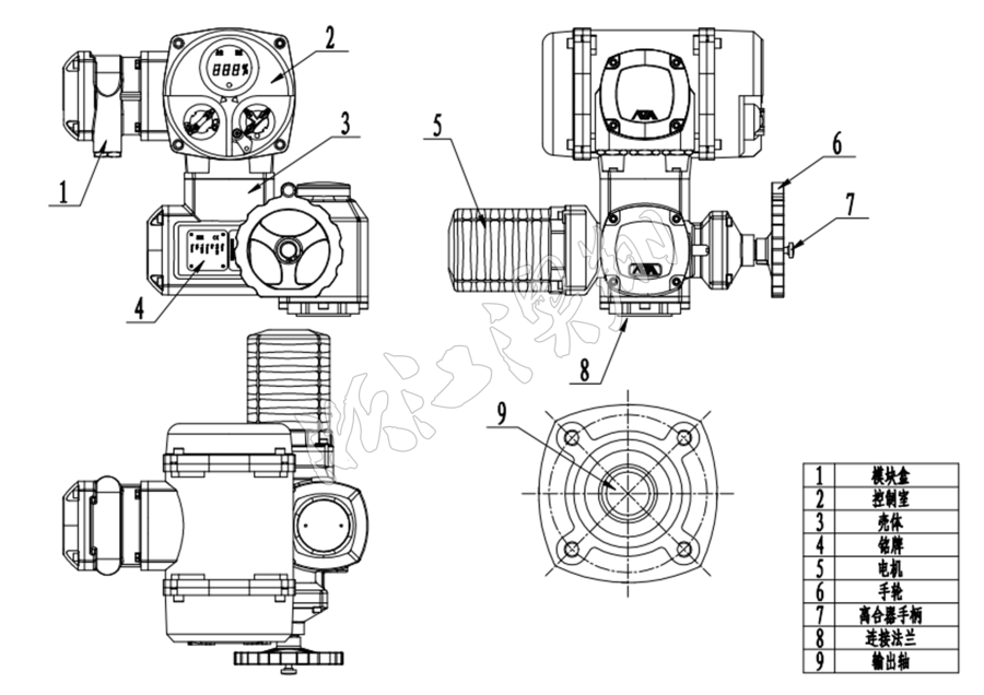 底部安裝尺寸符合ISO5210標(biāo)準(zhǔn),驅(qū)動軸套可拆下根據(jù)需要進行加工,兼容性好??梢源怪卑惭b,也可以水平安裝。